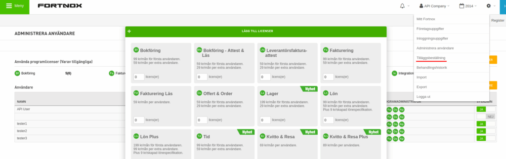 Api-licens saknas. Hem » WooCommerce » WooCommerce Fortnox Integration » Felsökning fortnox » Api-licens saknas. Du saknar API-licens till Fortnox. Licensen måste köpas i Fortnox. Logga in i Fortnox och klicka på ditt användarnamn. Välj sedan tilläggsbeställning. I tabellen välj Integration och sedan Beställ. Följ sedan anvisningar från Fortnox. Postat i Felsökning fortnox, WooCommerce, WooCommerce Fortnox Integration