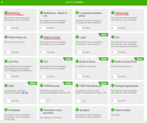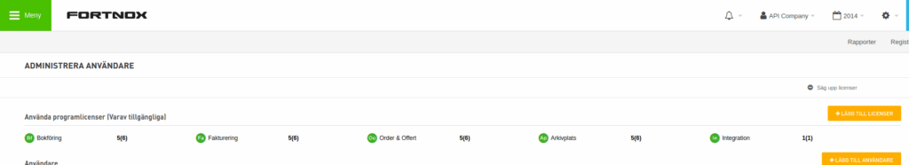 Under menyvalet "Administrera användare" ser ni vilka moduler ni har: