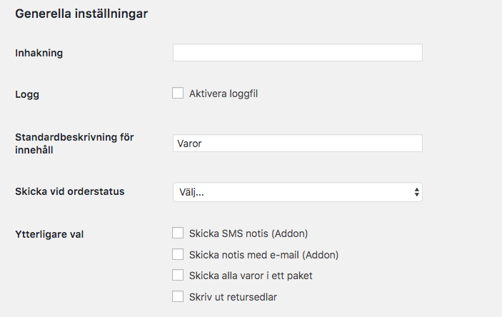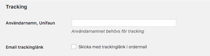 - Unifaun Plus-konto om man vill kunna använda Tracking