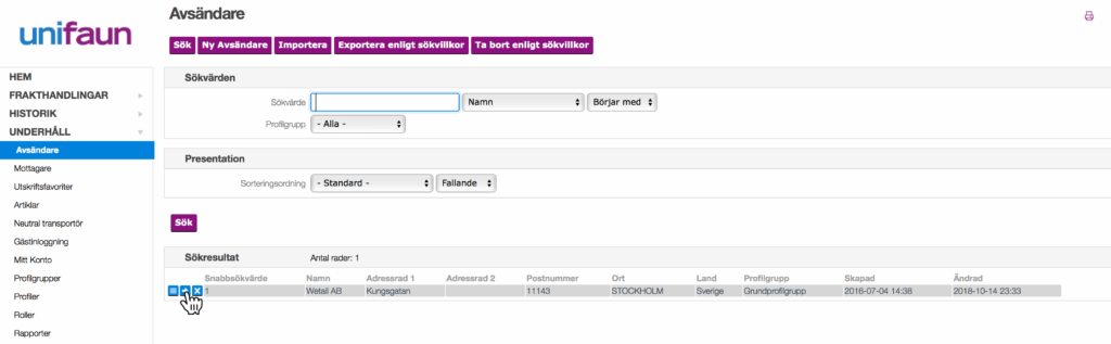 1. Börja med att logga in på ditt konto hos Unifaun eller Pacsoft