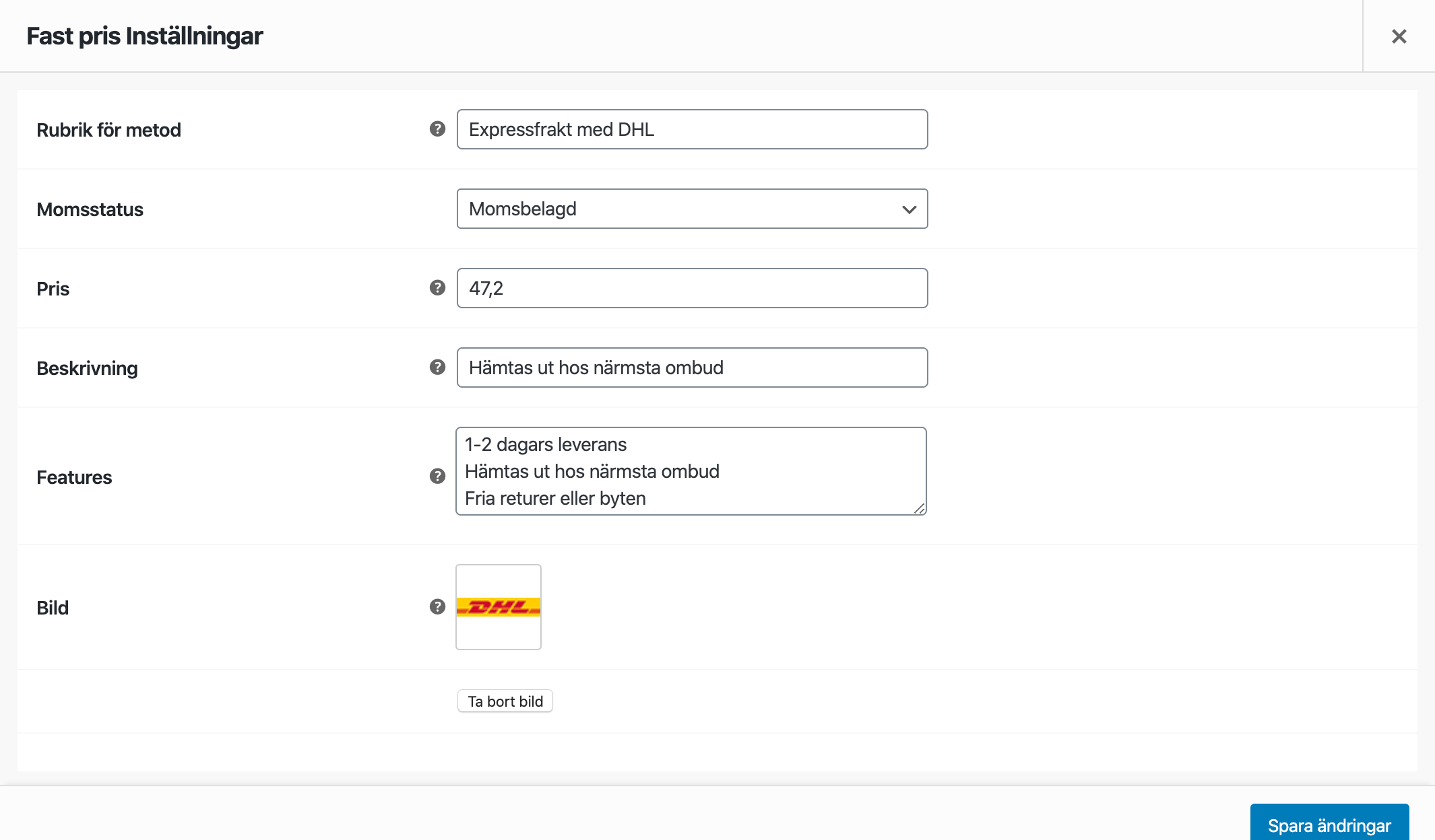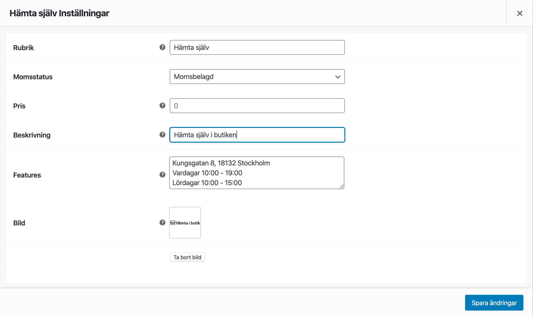 Klicka på Spara ändringar när du är klar, då sparas ditt leveranssätt.