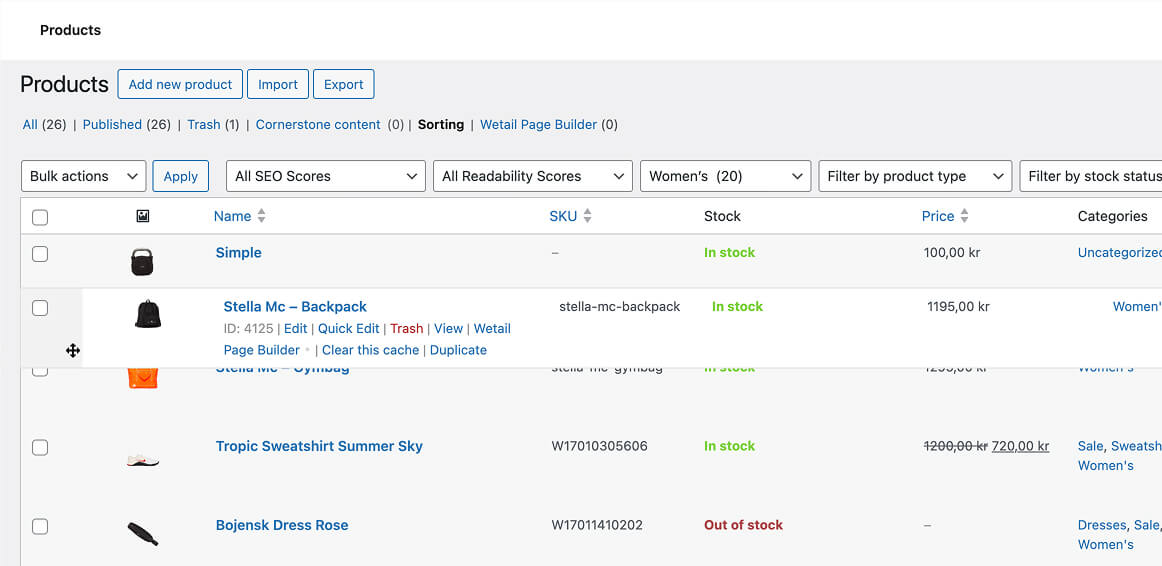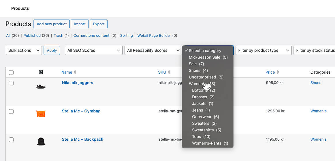 I WooCommerce har du möjlighet att organisera och sortera dina produkter på ett enkelt och effektivt sätt. Detta kan vara särskilt användbart när du har produkter som du vill exponera överst för en t.ex kategorivy.