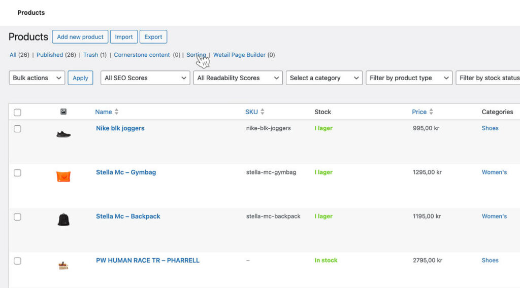 Sortera produkter i WooCommerce