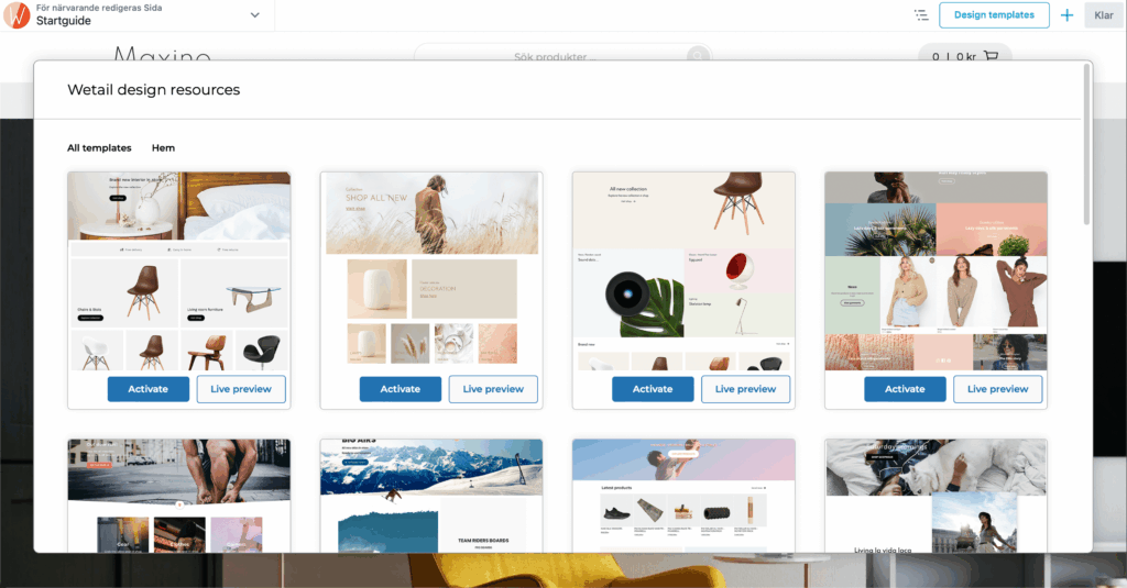 I denna guide visar vi hur du kan välja en startsida till din shop. Skräddarsy dessa till mallarna efter ert varumärkes design.