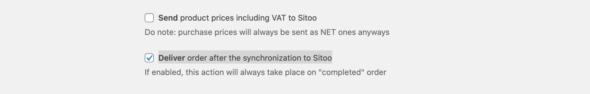- Sitoo: När ordern lagts skickas den till Sitoo direkt.