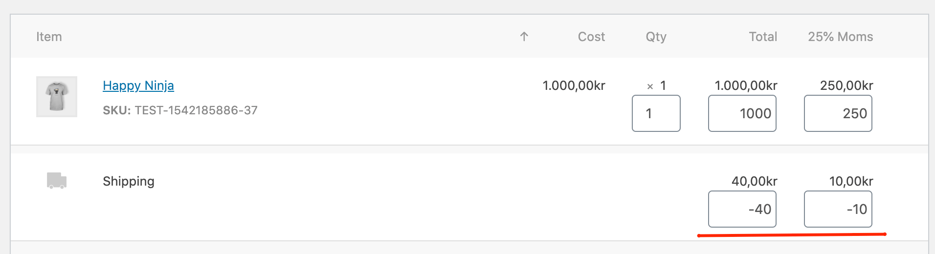- Om en returavgift ska betalas av kunden, ange ett negativt belopp i fraktraden.